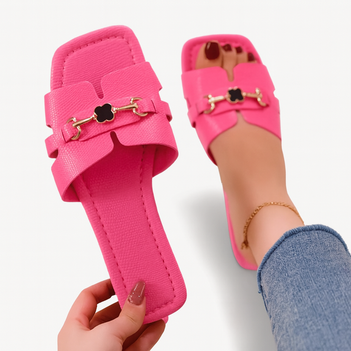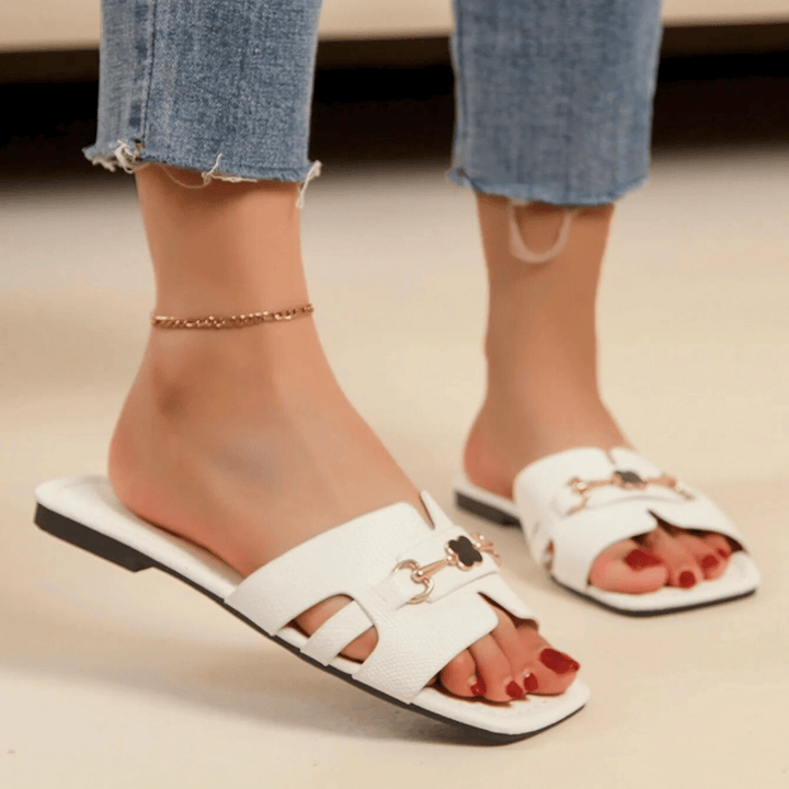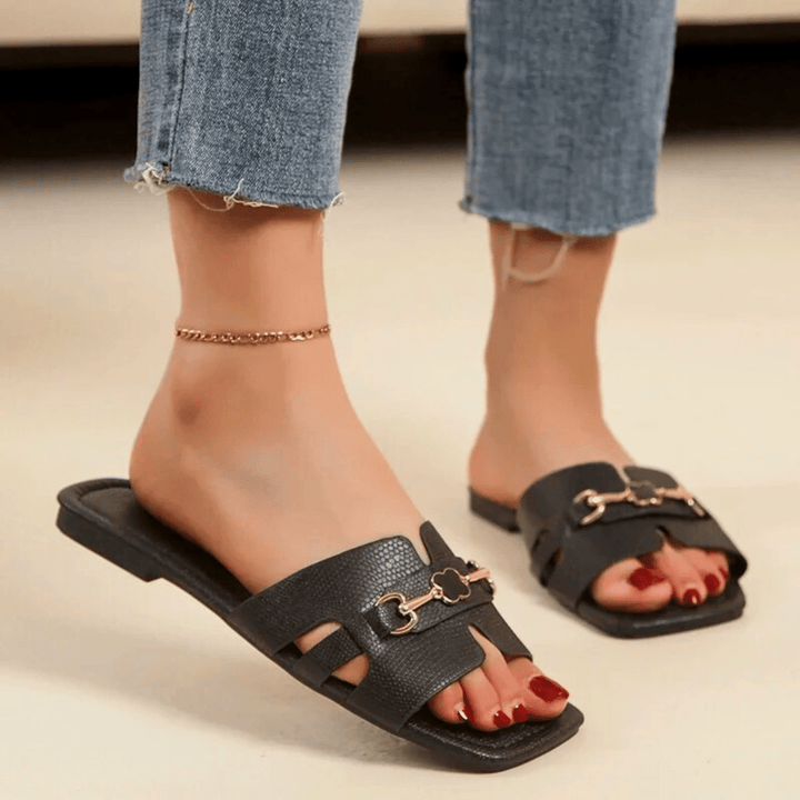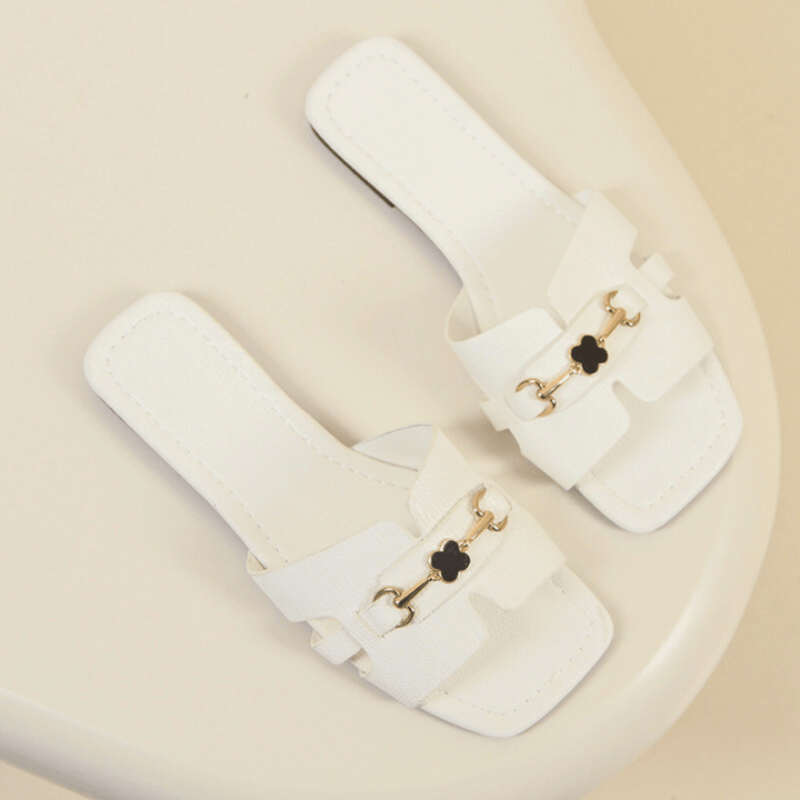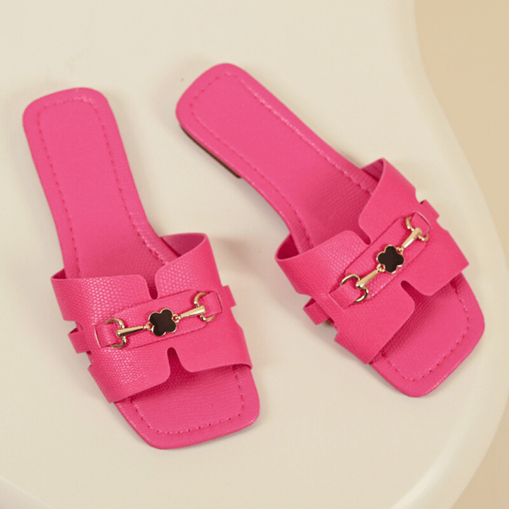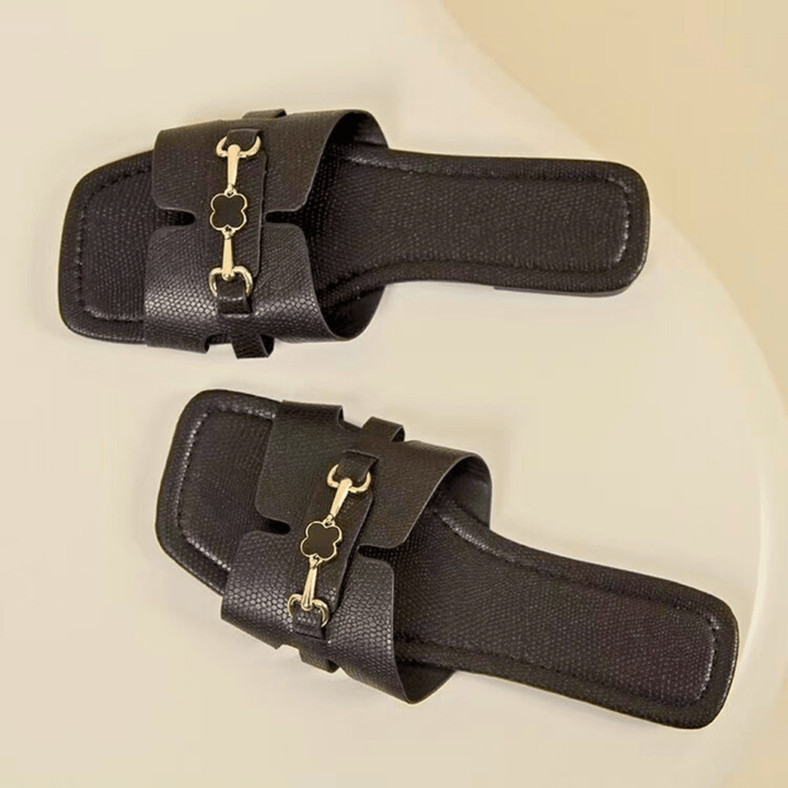 Featuring a chic leather upper and designer buckle detailing, these slides boast a sleek, modern silhouette. Designed with a soft, comfortable insole and non-slip rubber outsole, they are your go-to essential for spring and summer.