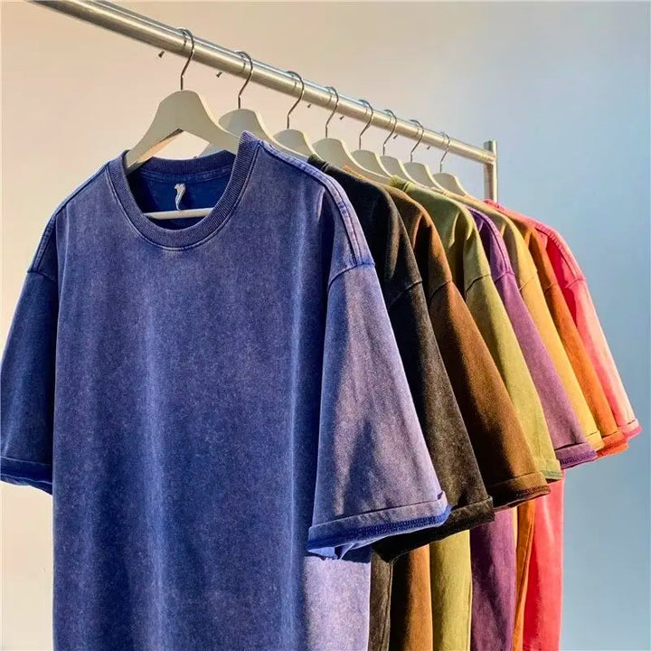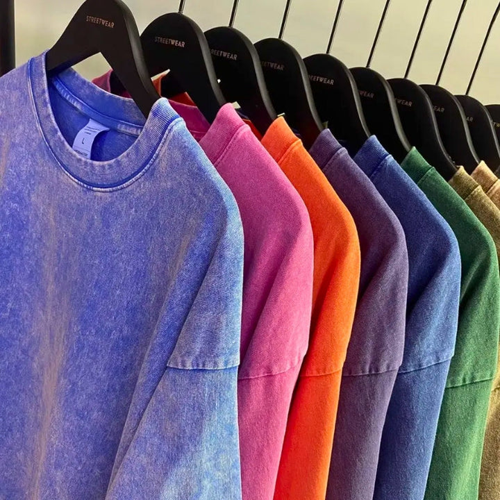 Washed for a broken-in look, this heavyweight tee delivers structure with a lived-in feel. Cut wide through the body, it holds its shape without clinging—built for daily wear, not throwaway trends.
