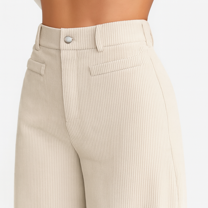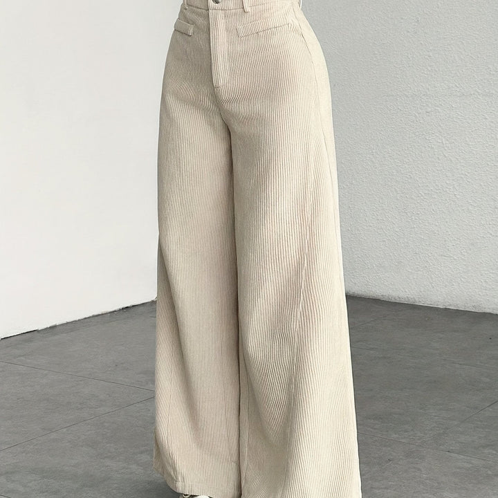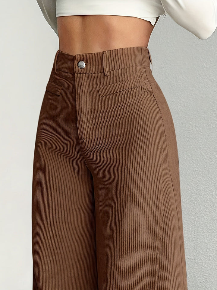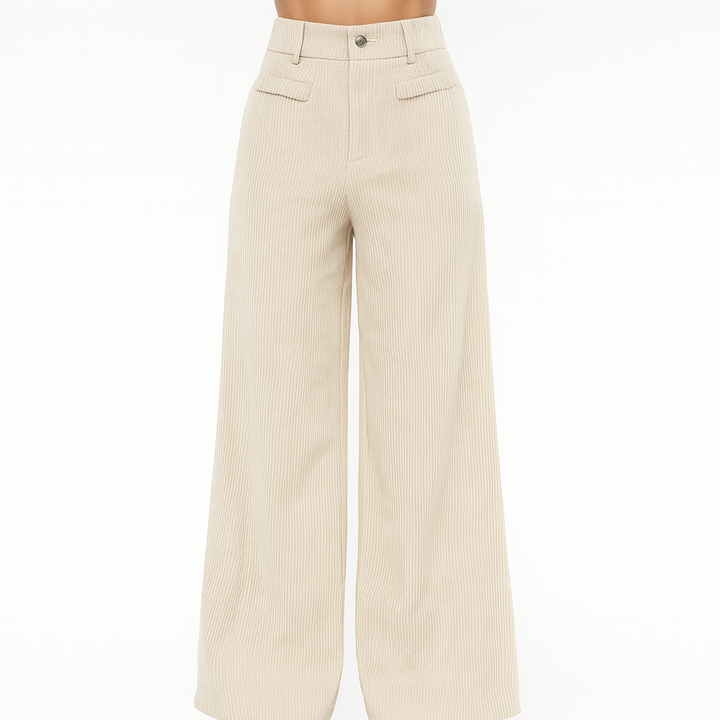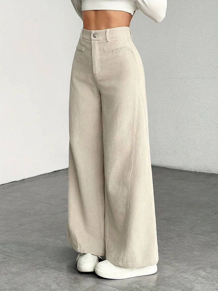 These high-waisted cord trousers bring texture and timeless sophistication to your wardrobe. Tailored in a wide-leg silhouette, they pair elevated lines with everyday wearability.