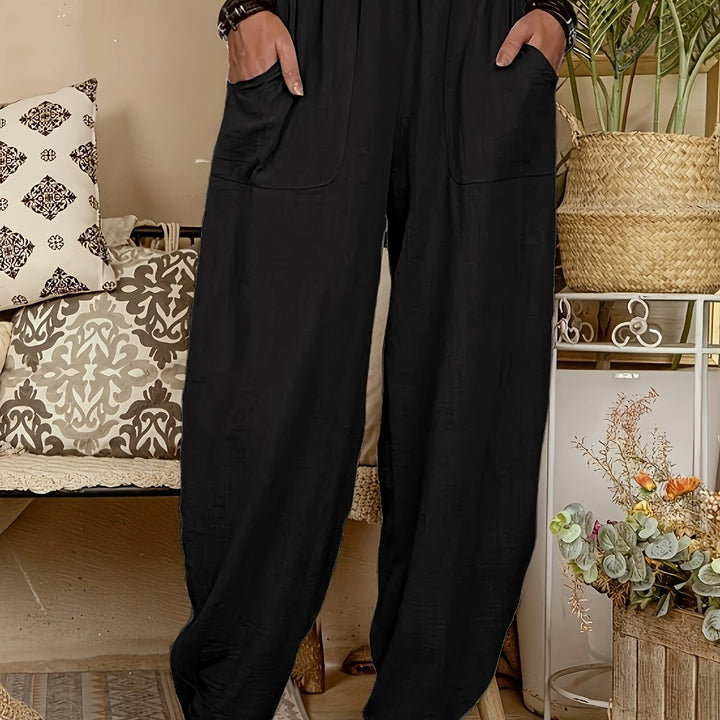 Tailored from a breezy linen-blend fabric, these loose trousers combine relaxed comfort with effortless elegance—perfect for laid-back sophistication throughout the day.