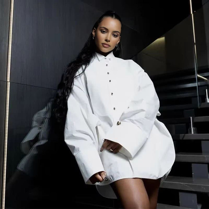 Redefining the classic shirt, this piece combines bold proportions with precision craftsmanship. Gold-tone accents and a structured silhouette create a striking balance between form and function.