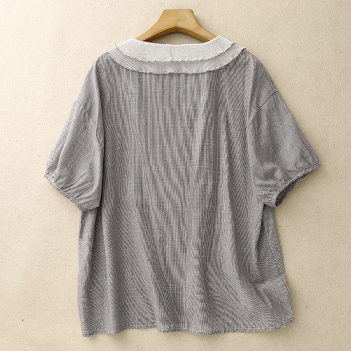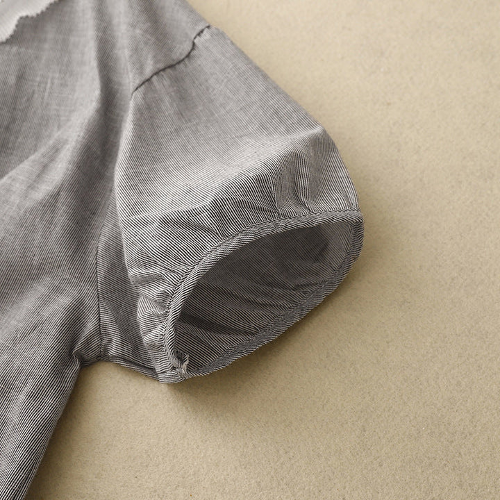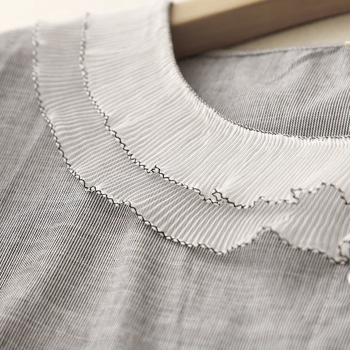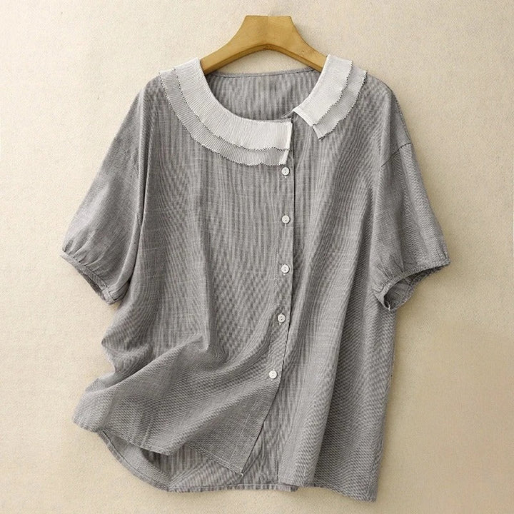 A modern nod to vintage charm—Mira pairs softness with subtle statement. Its pleated petal collar and breezy linen texture make it your new go-to for effortless elegance.