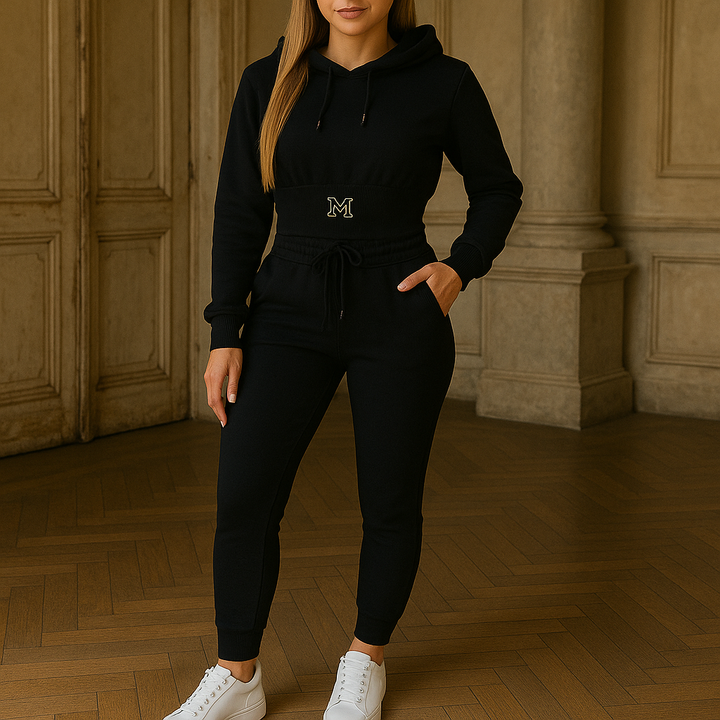 The Quinn Tracksuit merges elevated style with everyday ease thanks to its refined silhouette and soft, stretch-enhanced fabric. The fitted high-waist pants and tailored top bring structure while maintaining comfort, making this set perfect whether for relaxed weekends or upgraded casual outings.